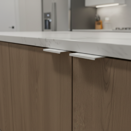 Er ist aus hochwertigem Metall mit einer widerstandsfähigen matten Oberfläche gefertigt, die sich angenehm anfühlt und gleichzeitig kratzfest ist. Das dünne, unauffällige Profil wirkt modern und fügt sich perfekt in Küchen, Badmöbel oder Wohnwände ein.