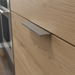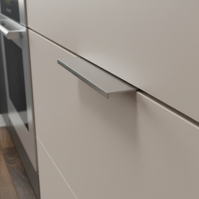 Er ist aus hochwertigem Metall mit einer widerstandsfähigen matten Oberfläche gefertigt, die sich angenehm anfühlt und gleichzeitig kratzfest ist. Das dünne, unauffällige Profil wirkt modern und fügt sich perfekt in Küchen, Badmöbel oder Wohnwände ein.