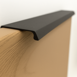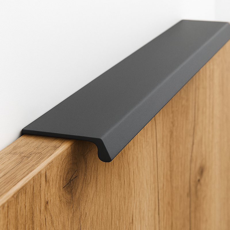 Der DELICIO-Griff ist so konzipiert, dass er direkt an der Kante von Möbeltüren oder Schubladen montiert werden kann. So entsteht ein sauberes und minimalistisches Erscheinungsbild, ohne dass eine herkömmliche Bohrung in der Oberfläche erforderlich ist. Seine schlanke und dennoch robuste Metallkonstruktion macht ihn praktisch, langlebig und modern zugleich.