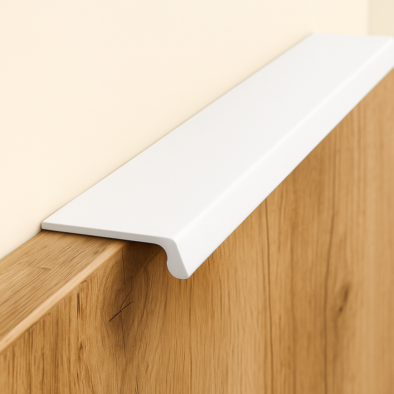 Der DELICIO-Griff ist so konzipiert, dass er direkt an der Kante von Möbeltüren oder Schubladen montiert werden kann. So entsteht ein sauberes und minimalistisches Erscheinungsbild, ohne dass eine herkömmliche Bohrung in der Oberfläche erforderlich ist. Seine schlanke und dennoch robuste Metallkonstruktion macht ihn praktisch, langlebig und modern zugleich.