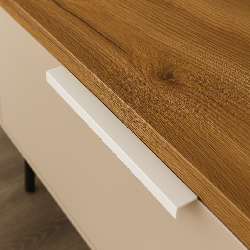 Der CHANEL-Griff ist eine elegante und funktionelle Lösung für moderne Möbel. Dank seines minimalistischen Designs lässt er sich direkt an der Türkante befestigen und sorgt so für klare Linien und ein zeitloses Aussehen.