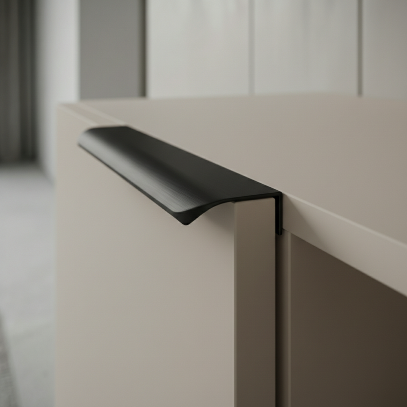 Der AVANTI-Griff in schwarzer, matter Ausführung ist die ideale Wahl für Innenräume, in denen Wert auf Kontrast, Eleganz und klare architektonische Linien gelegt wird.