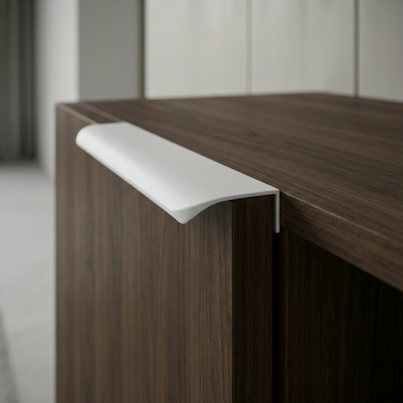Der AVANTI-Griff in mattweiß ist die ideale Lösung für Innenräume, in denen helle Farben und klare Linien dominieren. Er verleiht den Möbeln ein dezentes, aber zugleich funktionales Designdetail.