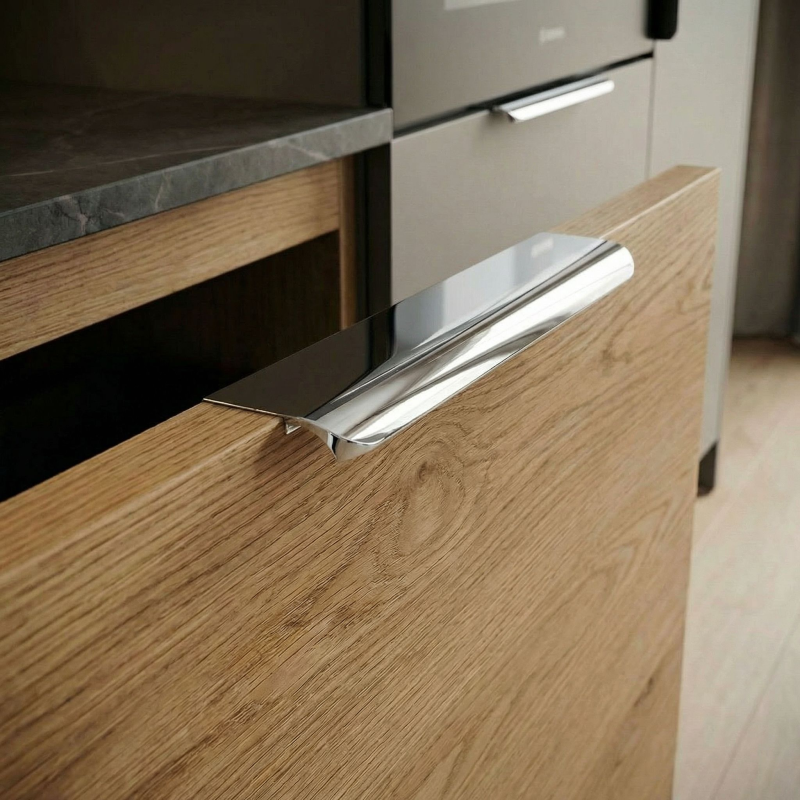 Der Griff LISA in glänzender Chromausführung ist die ideale Wahl für Innenräume, in denen Wert auf Detail, Qualität und ein markantes Designelement gelegt wird.