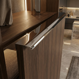 Der Griff LISA in der Ausführung Chrom glänzend ist ein elegantes Accessoire für moderne sowie zeitlose Innenräume. Er wird an der oberen Kante der Tür montiert und bewahrt so das saubere und minimalistische Erscheinungsbild des Möbels, ohne die Frontfläche zu stören.