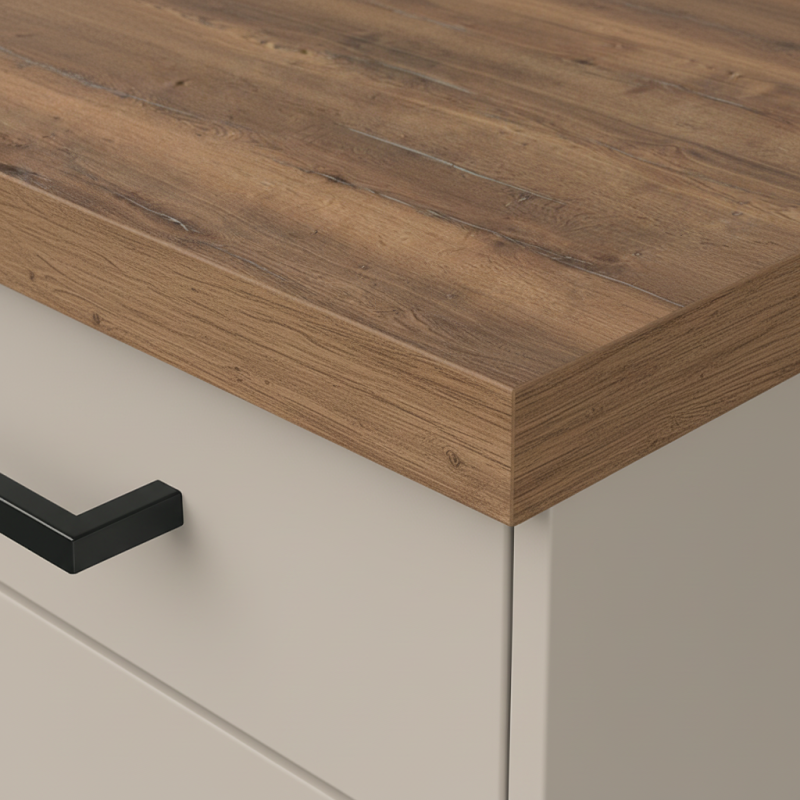 🪵 Gerade ABS-Kante – ästhetisches Aussehen, erhöhter Schutz vor Feuchtigkeit.