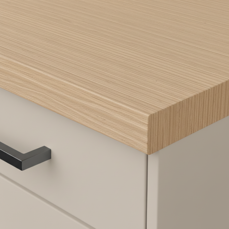 Die Arbeitsplatte EGGER Eiche Tonsberg Natur (H305 ST12) vereint die authentische Holzoptik mit der Widerstandsfähigkeit modernen Laminats. Die Oberfläche mit der Struktur ST12 Omnipore Matt imitiert Eichenholz naturgetreu und verleiht dem Interieur einen natürlichen, warmen Charakter.