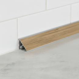 Sie besteht aus zwei Teilen – der untere Teil wird angeschraubt oder geklebt auf die Arbeitsplatte und der obere wird anschließend eingeklickt in den unteren Teil. So entsteht ein fester, präziser und eleganter Abschluss im gleichen Dekor wie die Arbeitsplatte.