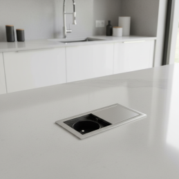 Die elegante und praktische Einbausteckdose VersaHit Mono ist die ideale Lösung für Küchen, Arbeitsplatten, Schreibtische oder moderne Möbel – einfach überall dort, wo Sie einen bequemen, unauffälligen und sicheren Zugang zum Strom benötigen.