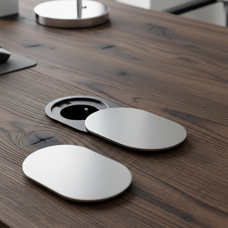 Elegante und kompakte elektrische Steckdose SLIDE in Edelstahl-Ausführung ist die ideale Lösung für Küchen, Büros und Arbeitstische. Dank der Schiebekappe lässt sich die Steckdose einfach durch seitliches Verschieben öffnen und nach Gebrauch wieder verstecken – nichts ragt über die Oberfläche hinaus.
