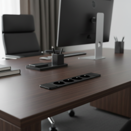 Die Innen-Steckdosenleiste CALON FRENCH ist eine praktische und ästhetische Lösung für Küchen, Büros, Schreibtische oder Möbel. Sie bietet 4× Steckdose 230V, wobei ihre kompakte Größe eine einfache Montage ermöglicht.