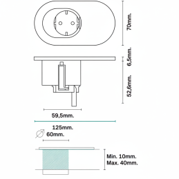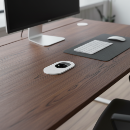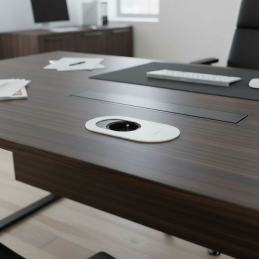 Die Steckdose ist für den Einbau in Möbel oder Arbeitsplatten vorgesehen. Dank der geringen Einbautiefe ist sie auch für dünnere Materialien geeignet.