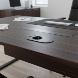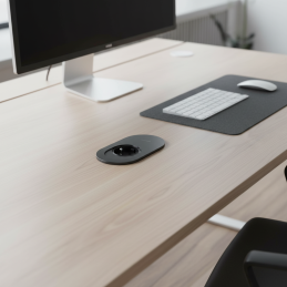 Die Steckdose ist für den Einbau in Möbel oder Arbeitsplatten vorgesehen. Dank der geringen Einbautiefe eignet sie sich auch für dünnere Materialien.