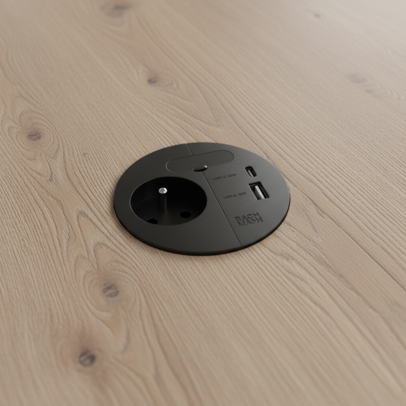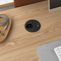 Die elektrische Steckdose LOOP IN Charge im eleganten schwarzen Design ist eine moderne Stromversorgungslösung für Schreibtische, Küchen, Büros oder Einbaumöbel. Sie vereint Premium-Design, hohe Leistung und Praktikabilität – ideal für moderne und industrielle Innenräume.