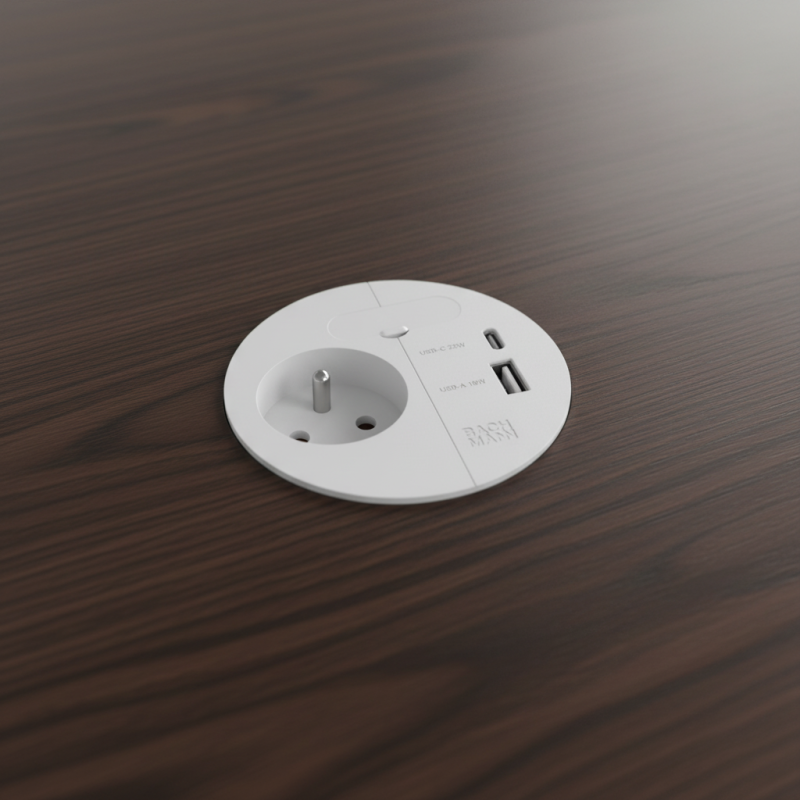 Die elektrische Steckdose LOOP IN Charge bietet eine moderne und funktionale Stromversorgungslösung für Schreibtische, Küchen, Büros oder Einbaumöbel. Sie vereint klares Design, hohe Leistung und einfache Installation – die ideale Wahl für moderne Innenräume.