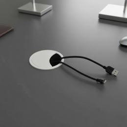 Die elegante weiße Kabeldurchführung LOOP 80 ist eine moderne und praktische Lösung für die verdeckte Kabelführung im Büro, Arbeitszimmer, Studentenzimmer oder Zuhause. Dank der reinen weißen Ausführung wirkt sie unauffällig und passt perfekt zu weißen Möbeln oder hellen Arbeitsplatten.
