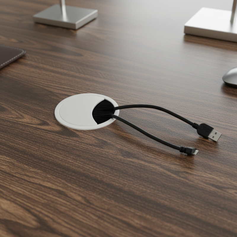Sie besteht aus robustem Metall und ihr drehbarer Deckel kann bequem in 4 verschiedenen Positionen eingestellt werden. So kann die Öffnung genau dort platziert werden, wo Sie die Kabel führen möchten. Die Staubbürste sorgt dafür, dass kein Schmutz durch die Öffnung fällt und verstärkt gleichzeitig sanft die durchgeführten Kabel.