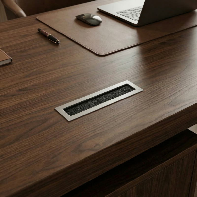 Die Kabeldurchführung MERIDA SHORT ist eine praktische und ästhetische Lösung für moderne Innenräume, in denen Sauberkeit des Arbeitsplatzes und Kabelorganisation wichtig sind.