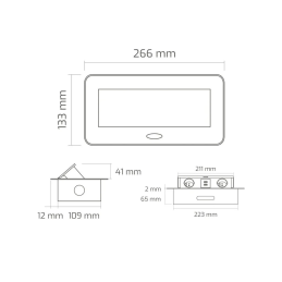 Maße der oberen Abdeckung: 266 × 133 mm