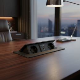 Die moderne ausklappbare Einbau-Steckdose KOMBI BOX ist eine praktische und elegante Lösung für Schreibtische, Kücheninseln, Büromöbel oder Wohnwände. Dank des Klappmechanismus bleibt die Steckdose bei Nichtgebrauch verborgen und stört das klare Design des Interieurs nicht.
