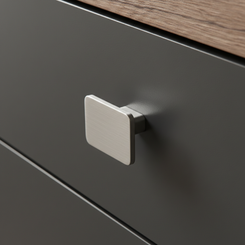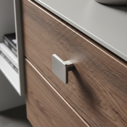Der SIMPS-Griff in gebürstetem Nickel ist die ideale Wahl für alle, die ein hochwertiges, funktionales und designtechnisch klares Detail für ihre Möbel suchen.