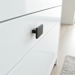 Der Griff ist aus hochwertigem Metall gefertigt, das Festigkeit, Stabilität und eine lange Lebensdauer gewährleistet. Die einfache geometrische Form mit abgerundeten Kanten sorgt für einen bequemen Griff und ein klares Design.