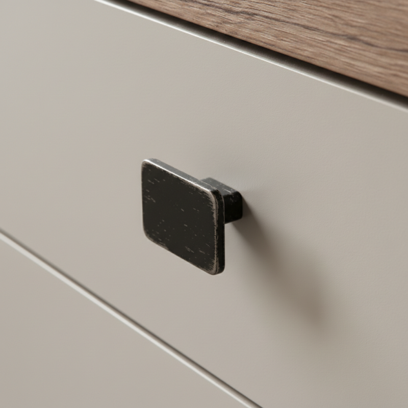 Der SIMPS-Griff in schwarzer Patina ist die ideale Wahl für Kunden, die ein originelles und designstarkes Detail für ihre Möbel suchen.