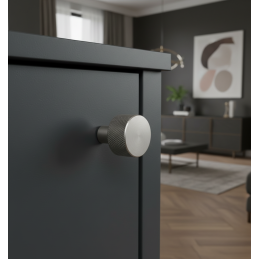 Der Knopf lässt sich hervorragend mit langen Griffen und Haken aus der INDUST-Kollektion kombinieren, was es ermöglicht, ein perfekt abgestimmtes Design für das gesamte Interieur zu schaffen.