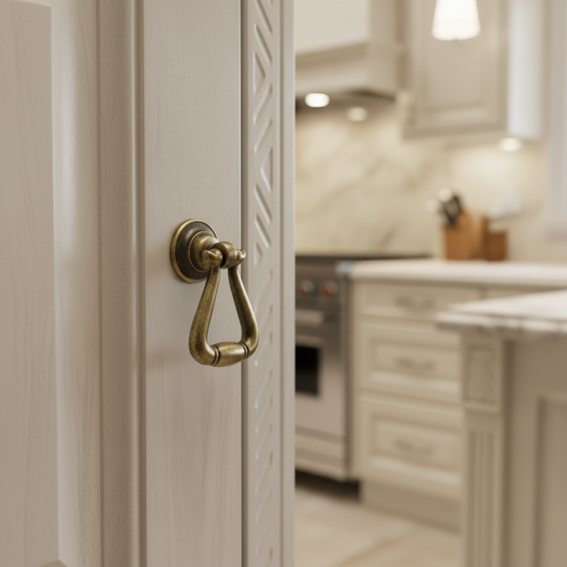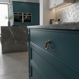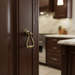 Eleganter Knopf AGNES in der Oberfläche Altmessing ist die ideale Ergänzung für klassische, Vintage- oder rustikale Möbel. Seine einzigartige Form erinnert an einen kleinen Hängering, der dem Möbelstück einen dezenten historischen Charakter verleiht. Die patinierte Oberfläche betont das Relief und verleiht dem Knopf ein authentisches antikes Aussehen.