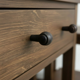 Die dunkle patinierte Oberfläche verleiht dem Knopf einen luxuriösen antiken Look, der die natürliche Struktur der Oberfläche hervorhebt und Holz sowie Metallelemente im Interieur perfekt ergänzt.