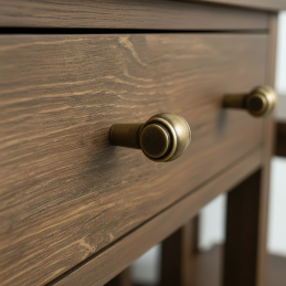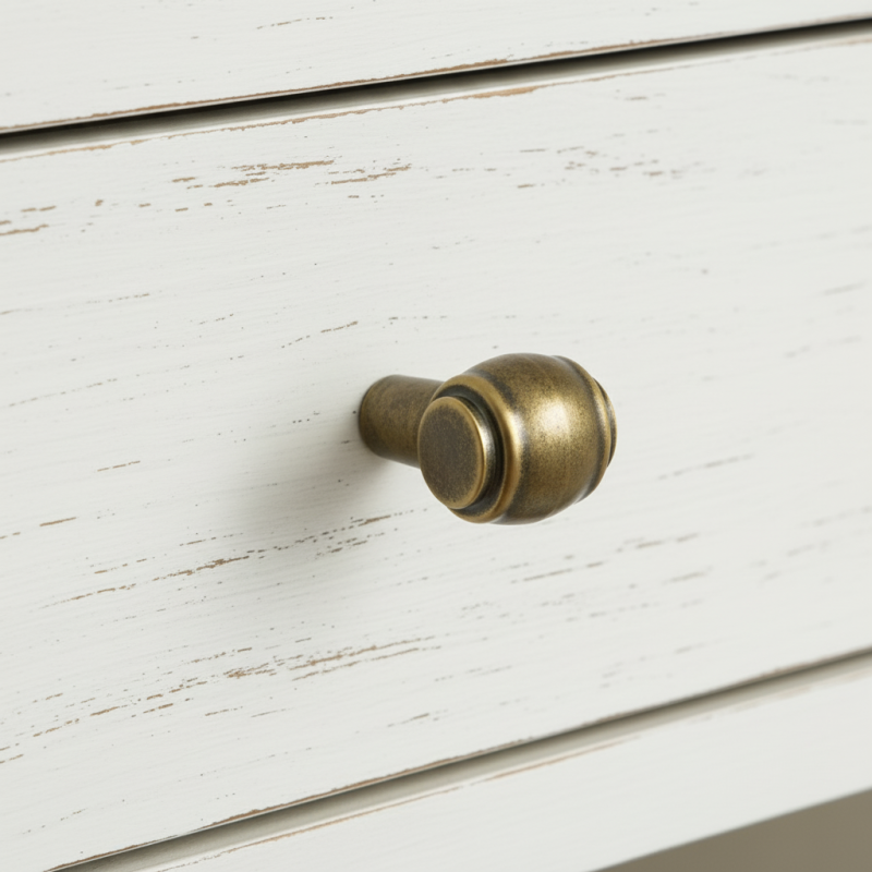 Der Knopf RUSTICALE in der Oberflächenbehandlung Alt-Messing ist ein stilvolles Accessoire mit Vintage- und rustikalem Flair. Er besticht durch seine präzise Metallverarbeitung und die charakteristische zylindrische Form, die den Möbeln ein individuelles und zeitloses Aussehen verleiht. Der warme Alt-Messing-Ton harmoniert wunderschön mit Holz und dunklen Oberflächen und unterstreicht sowohl den traditionellen als auch den industriellen Einrichtungsstil.