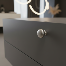 Der Knopf VALEA in Edelstahlausführung ist ein elegantes Detail, das den Möbeln ein modernes Aussehen verleiht und gleichzeitig für eine komfortable Nutzung sorgt.