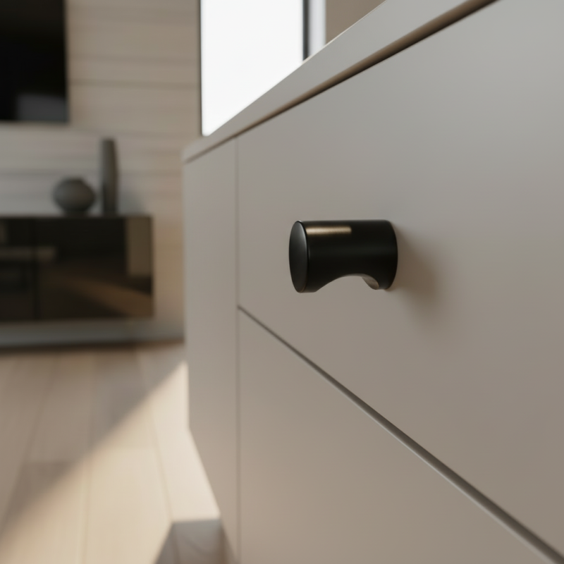 Knopf LIVIA / Schwarz matt ist die perfekte Wahl für alle, die ihrem Möbelstück modernen Stil, Eleganz und Praktikabilität in einem verleihen möchten.