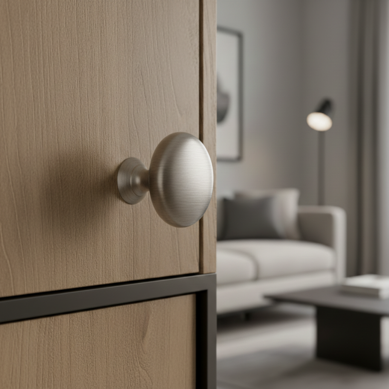 Der Knopf BEA in der Ausführung gebürstetes Nickel ist ein modernes und zeitloses Accessoire, das Ihren Möbeln ein elegantes und professionelles Aussehen verleiht. Die fein gebürstete Oberfläche wirkt luxuriös und zugleich dezent, wodurch sie sich hervorragend mit verschiedenen Möbeltypen und Dekorfarben kombinieren lässt.