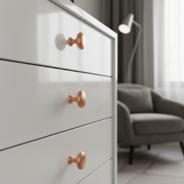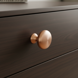Der elegante und moderne Knopf BEA in Kupferausführung ist das ideale Accessoire für Möbel in jedem Interieur. Seine sanft abgerundete Form und die matte Oberfläche verleihen Schränken oder Schubladen ein zeitloses Aussehen mit einem Hauch von Luxus.