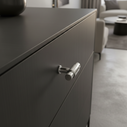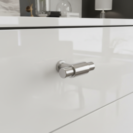 Eleganter Griff – Knopf TINA DUO in der Ausführung glänzendes Nickel ist ein zeitloses Accessoire, das den Möbeln ein klares, modernes und anspruchsvolles Aussehen verleiht. Seine doppelte zylindrische Form wirkt ausgewogen und designorientiert, wodurch er sowohl in moderne, minimalistische als auch elegante Interieurs passt.
