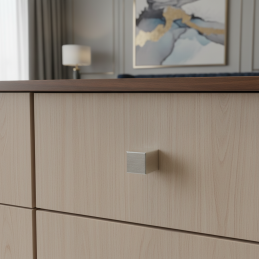 Der Knopf BLOCK in der Ausführung Aluminium ist die ideale Wahl für ein modernes Interieur, in dem schlichte Linien, Funktionalität und zeitlose Ästhetik dominieren. Seine perfekt regelmäßige, quaderförmige Form unterstreicht den minimalistischen Charakter der Möbel und wirkt elegant, technisch und professionell.
