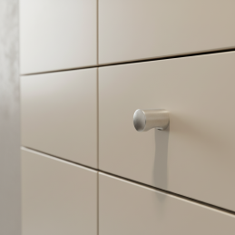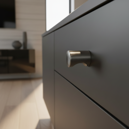 Der Knopf LIVIA in der Ausführung Edelstahl stellt die ideale Lösung für moderne Möbel dar, die ein klares, funktionales und ästhetisches Detail erfordern. Seine kompakte, zylindrische Form mit sanft geformter seitlicher Aussparung bietet einen bequemen Griff und erleichtert die Handhabung von Türen oder Schubladen.