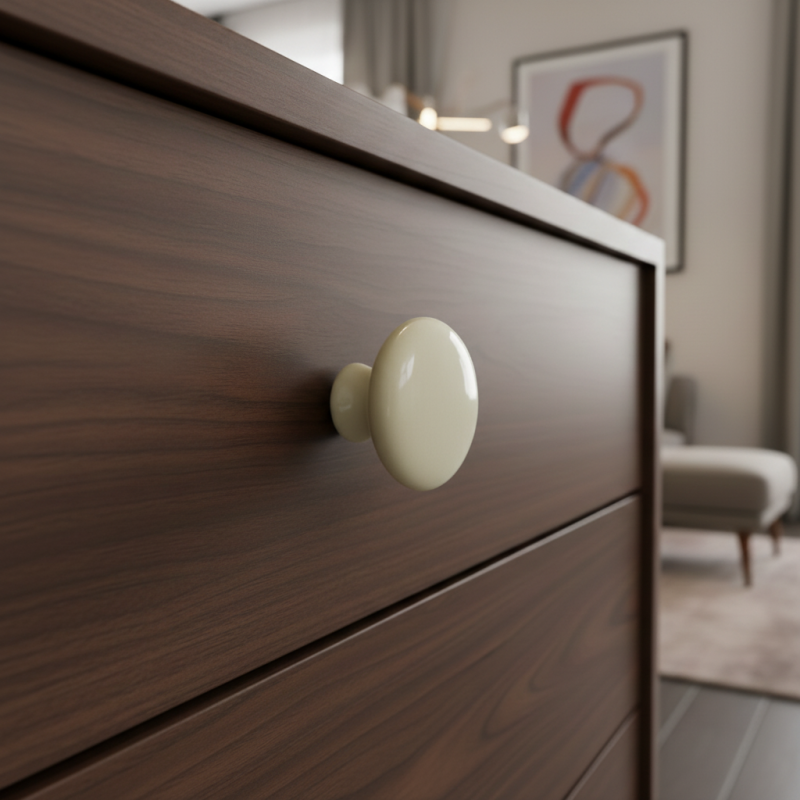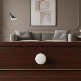 Der Knopf FRAGILE in der Ausführung weißes Porzellan ist ein zeitloses und universelles Accessoire, das sowohl in moderne als auch klassische Innenräume perfekt passt. Die glatte Porzellanoberfläche wirkt zart, luxuriös und verleiht den Möbeln ein sauberes, ästhetisches Aussehen.