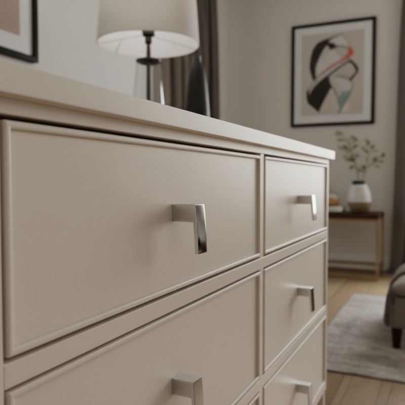 Dank der robusten Metallausführung ist der Knopf auch bei täglichem Gebrauch widerstandsfähig und zuverlässig, geeignet für Küchen, Bäder, Wohnräume und Büromöbel.