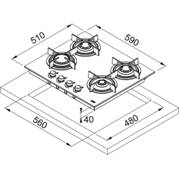 • Ausschnittmaß Arbeitsplatte: 560 × 480 mm