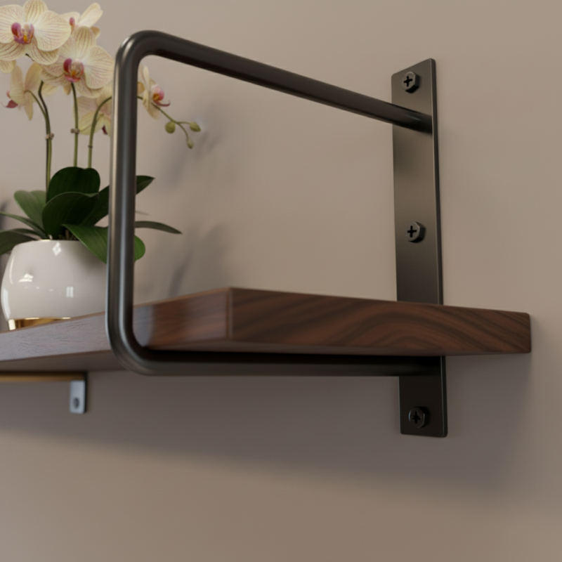 Die Halterung VICTORIA in elegantem schwarzem Design ist eine praktische und stabile Lösung für die Montage offener Regale. Ihre einfache, aber sehr funktionale Form garantiert Festigkeit und Eignung für den täglichen Gebrauch. Das runde Profil wirkt modern und sauber, was sie zu einer ausgezeichneten Wahl für Küchen, Bäder, Wohnzimmer und Technikräume macht.