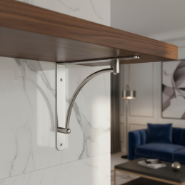 Die LOOK Halterung besteht aus hochwertigem Metall, das eine langfristige Beständigkeit und zuverlässige Unterstützung für Regale gewährleistet. Sie stellt eine ideale Kombination aus Funktionalität und Design dar, die den Charakter jedes Raums unterstreicht.