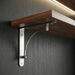 Die elegante LOOK Regalhalterung in der Ausführung glänzendes Chrom bietet eine stilvolle und zugleich stabile Lösung zur Befestigung von Regalen in modernen Innenräumen. Ihr bogenförmiges Design verleiht der Konstruktion optische Leichtigkeit, während sie eine hohe Stabilität und Tragfähigkeit beibehält.