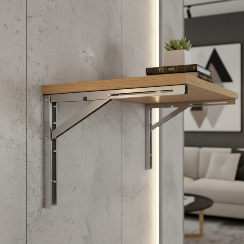Stabile und praktische klappbare Konsole, geeignet für Regale, Klapptische, Arbeitsplatten oder Bartheken. Dank der verzinkten Oberfläche bietet die Konsole eine erhöhte Korrosionsbeständigkeit, was sie nicht nur für den Innenbereich, sondern auch für weniger geschützte Räume wie Garagen, Keller oder Werkstätten geeignet macht.