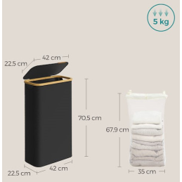 Mit einem Fassungsvermögen von 60 Litern und den Maßen 42 x 22,5 x 70,5 cm ist dieser Korb groß genug, um die Wäsche einer Person für eine Woche aufzunehmen. Sie müssen sich nicht mehr mit dem täglichen Sammeln der Wäsche abmühen, denn dieser Korb bietet Ihnen den Platz und die Organisation, die Sie brauchen.