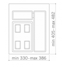 Separater Einsatz PARADISO für die Schublade, in den Sie freistehende Mülleimer Ihrer Wahl einsetzen können - siehe verwandte Produkte. Gestalten Sie Ihren Mülleimer je nach Bedarf und Schrankbreite.