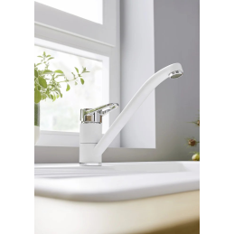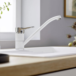 Die Armatur verfügt über einen oben angebrachten Bedienhebel, der eine einfache und präzise Einstellung des Wasserflusses und der Temperatur ermöglicht. Der um 180° schwenkbare Auslauf bietet ausreichend Arbeitsradius für den täglichen Gebrauch.