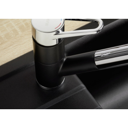 Blanco Wega-S II im Silgranit-Look kombiniert modernes Design mit praktischer Funktionalität. Dank der farblichen Abstimmung mit den Granitspülen von Blanco entsteht ein harmonisches Erscheinungsbild im Küchenbereich. Die Armatur ist mit einer ausziehbaren Brause mit Strahlumschalter ausgestattet, die das Umschalten zwischen Normalstrahl und Brausestrahl ermöglicht.