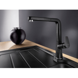Hochwertige ausziehbare Brause – ermöglicht bequemes Abspülen von Geschirr und größeren Gefäßen.